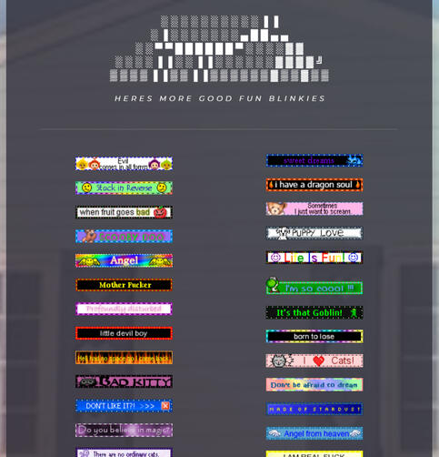 pixels, clip art, blinkies, gifs, graphics, cursors, html code, all sorta stuff